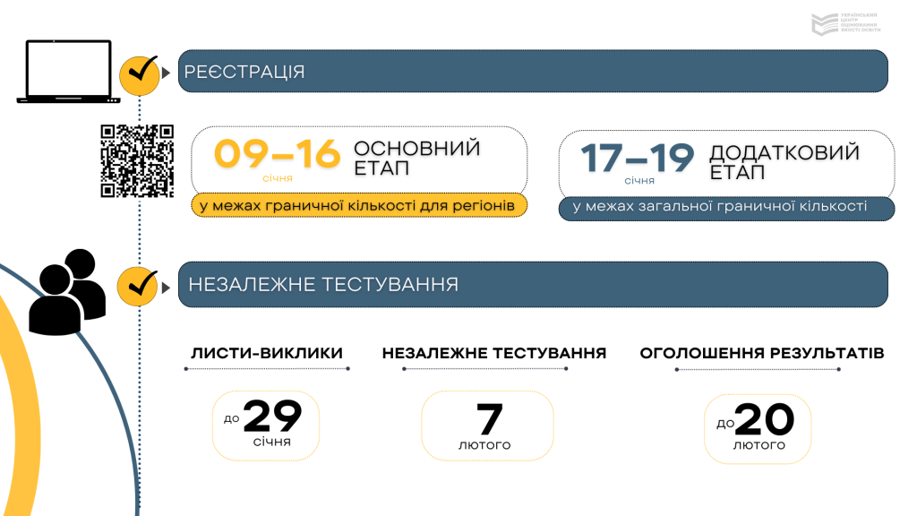 Відповідно до цього ж наказу реєстрація для участі в сертифікації триватиме протягом 09 січня – 19 січня 2026 року й проходитиме у два етапи: