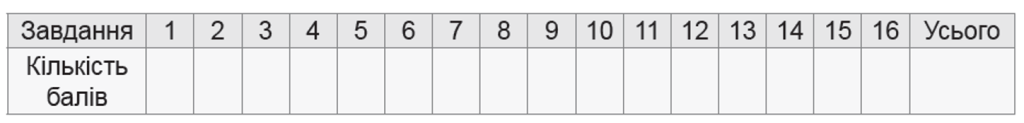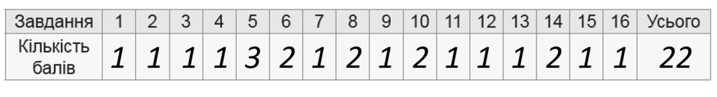 - 0 балів, якщо вибрано неправильну відповідь, або вибрано більше як одну відповідь, або відповіді не надано.