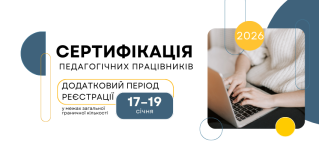 17 січня о 00:00 розпочнеться додатковий період реєстрації для участі в сертифікації педагогічних працівників 2026 року, який триватиме до 19 січня.