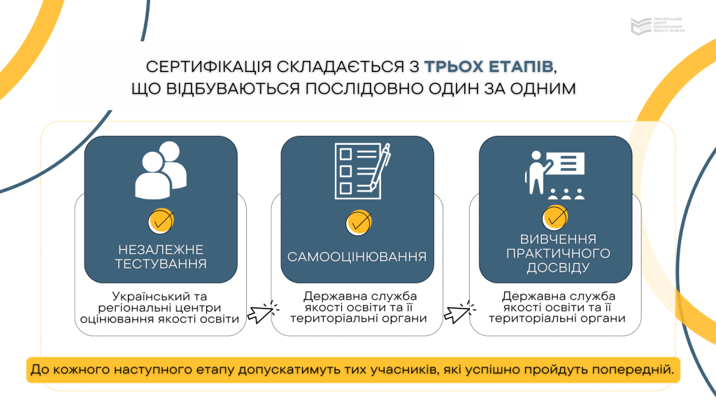 Педагогічні працівники беруть участь у сертифікації виключно на добровільних засадах і можуть відмовитися від неї на будь-якому етапі.